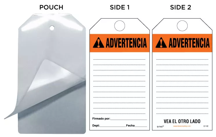 These Self-Laminating Tag Kits allow you to customize a tag by writing specific instructions in pen, pencil or marker. The tag is then laminated with a heavy-duty Laminating Pouch included in the Kit, by passing the tag and pouch through an Idesco desktop laminator (or other laminating machine). The tag is sealed in 20 mils of rigid plastic, fully protected from moisture, dirt, grease and chemicals. This durable tag exceeds the OSHA-required 50 lbs for lockout situations. Laminating Pouches are available with a matte finish on both sides, a gloss finish on both sides, or with one side matte, one side gloss.