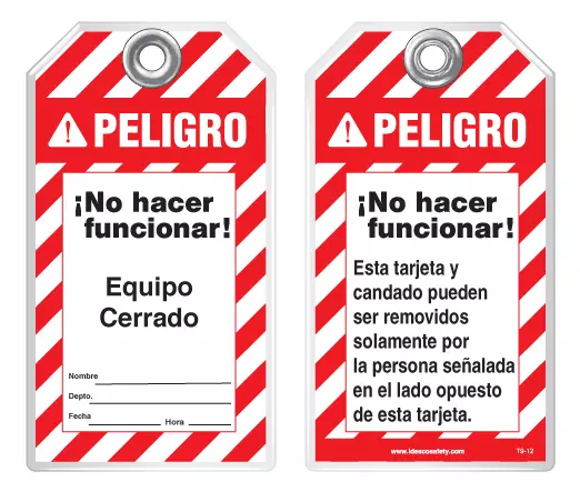 Idesco Safety's Classic Industrial safety tags are uniquely durable and strong and they are the most popular lockout safety tag for thousands of industrial companies around the world! They hold up against moisture, dirt, grease, chemicals and extreme temperatures. Each tag has a 3/8 hole reinforced with a metal grommet and has a pull strength that exceeds the 50 lb pull strength established by OSHA's Lockout/Tagout standard (OSHA 1910.147). Printing is UV protected and encapsulated inside rigid PVC. This rugged material has a durable, hard-matte finish which retains pen, pencil and marker notations and pencil may be erased for multiple use.
