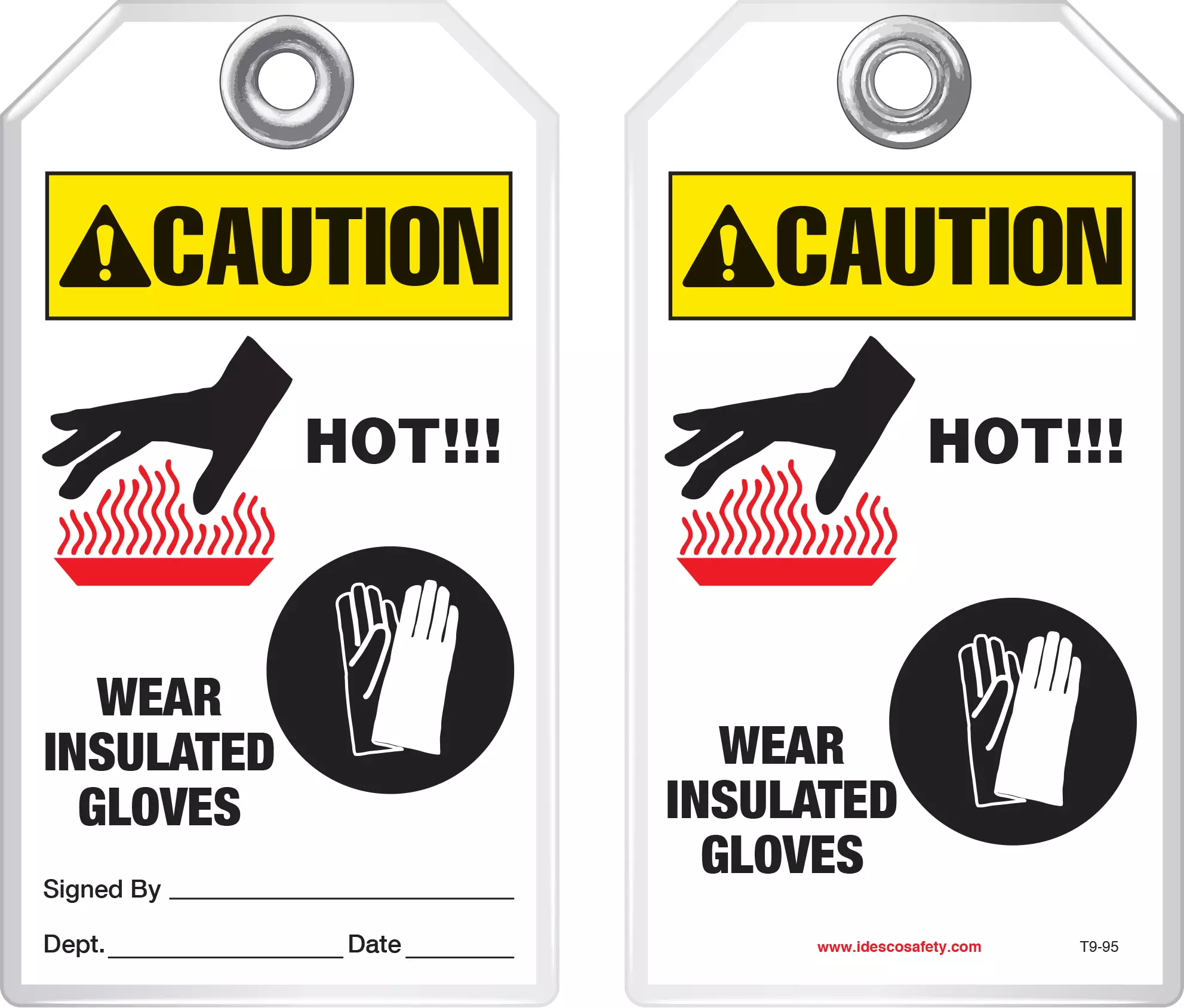 Idesco Safety's Classic Industrial safety tags are uniquely durable and strong and they are the most popular lockout safety tag for thousands of industrial companies around the world! They hold up against moisture, dirt, grease, chemicals and extreme temperatures. Each tag has a 3/8 hole reinforced with a metal grommet and has a pull strength that exceeds the 50 lb pull strength established by OSHA's Lockout/Tagout standard (OSHA 1910.147). Printing is UV protected and encapsulated inside rigid PVC. This rugged material has a durable, hard-matte finish which retains pen, pencil and marker notations and pencil may be erased for multiple use.