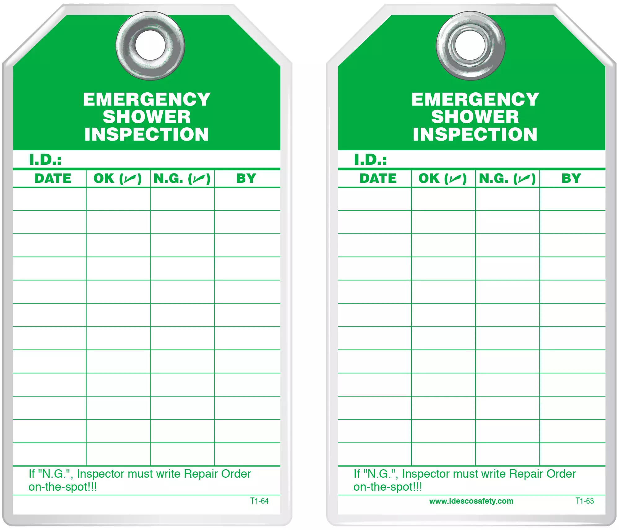 Idesco Classic Industrial Safety Tags are durable and strong and withstand moisture, dirt, grease, chemicals and extreme temperatures. These tags have a 3/8" hole reinforced with a heavy metal grommet. Each tag has a pull strength that exceeds the OSHA-required 50 lbs and consists of 6 mil paper printing encapsulated inside 25 mil of rigid PVC. This rugged material is UV-resistant and has a hard matte finish which retains pen, pencil and marker notations which may be erased for multiple use. This is the safety tag of choice for industrial facilities throughout the USA.