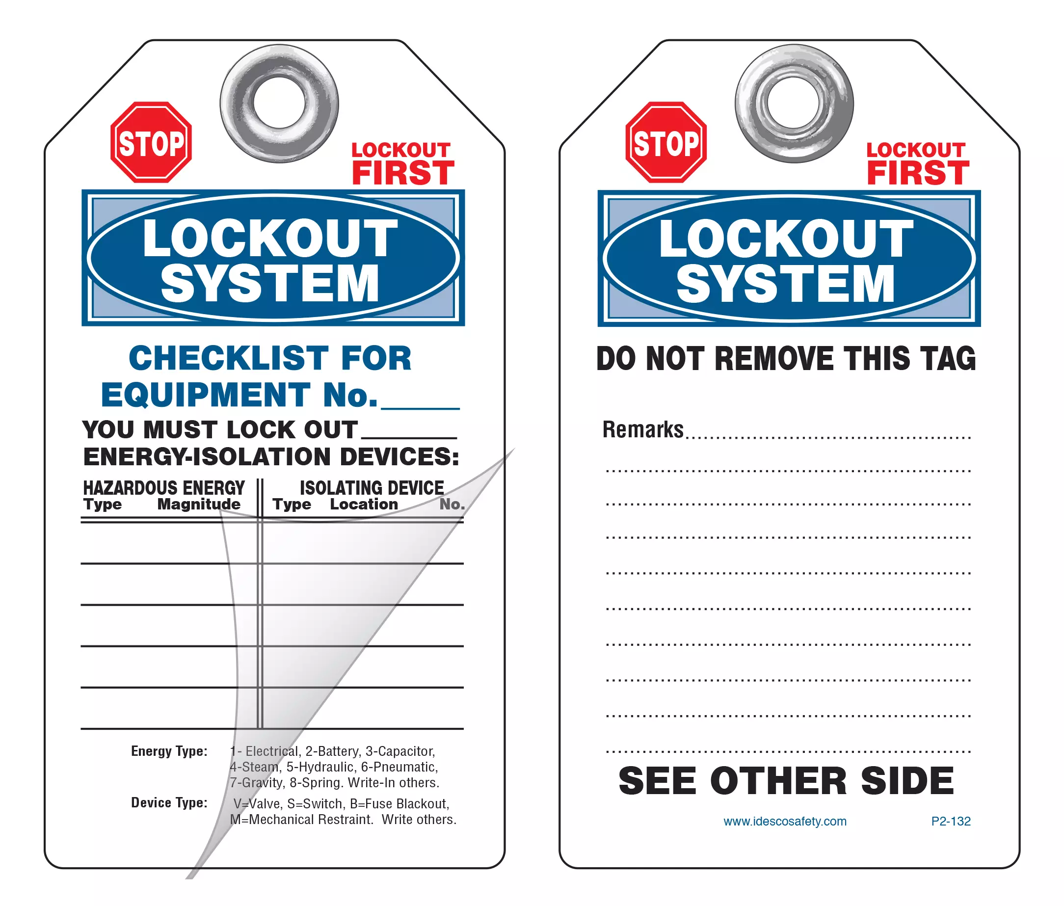 These self-laminating P/S lockout, safety and operational tags allow you to write specific instructions in pen, pencil or marker. Then simply press down a pressure-sensitive laminating film which protects the tag from moisture, dirt, grease and chemicals. No equipment is needed to laminate these tags. Each tag has a pull strength that exceeds the OSHA-required 50 lbs. Printing is on rigid plastic and a 2 mil polyester lamination on either one or two sides.