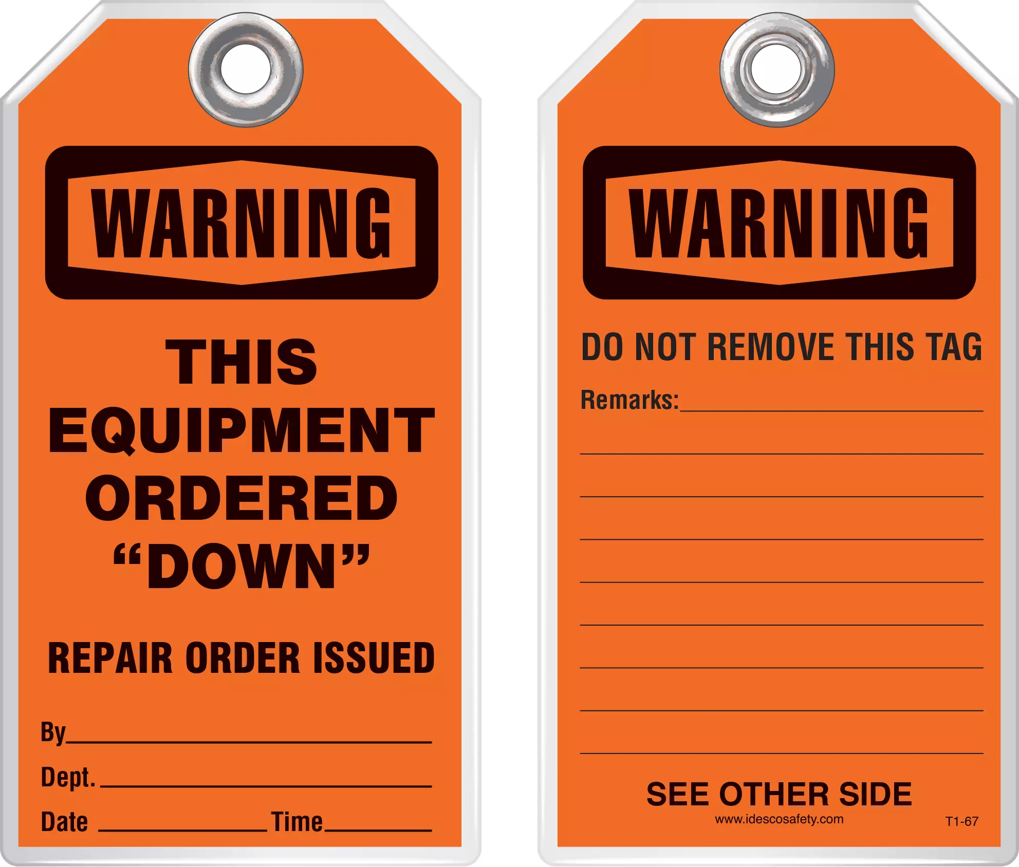 Maintenance Safety Tag - Warning, This Equipment Ordered "Down" T1-67