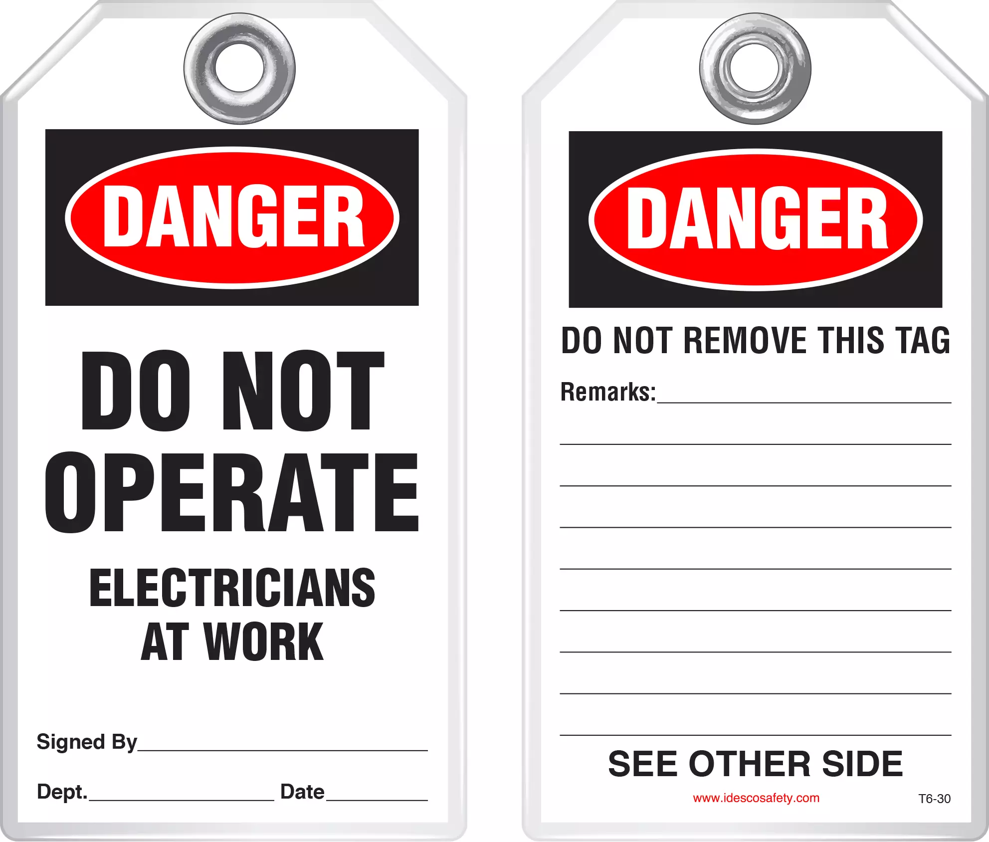 Lockout Safety Tag - Danger, Do Not Operate, Electricians At Work T6-30