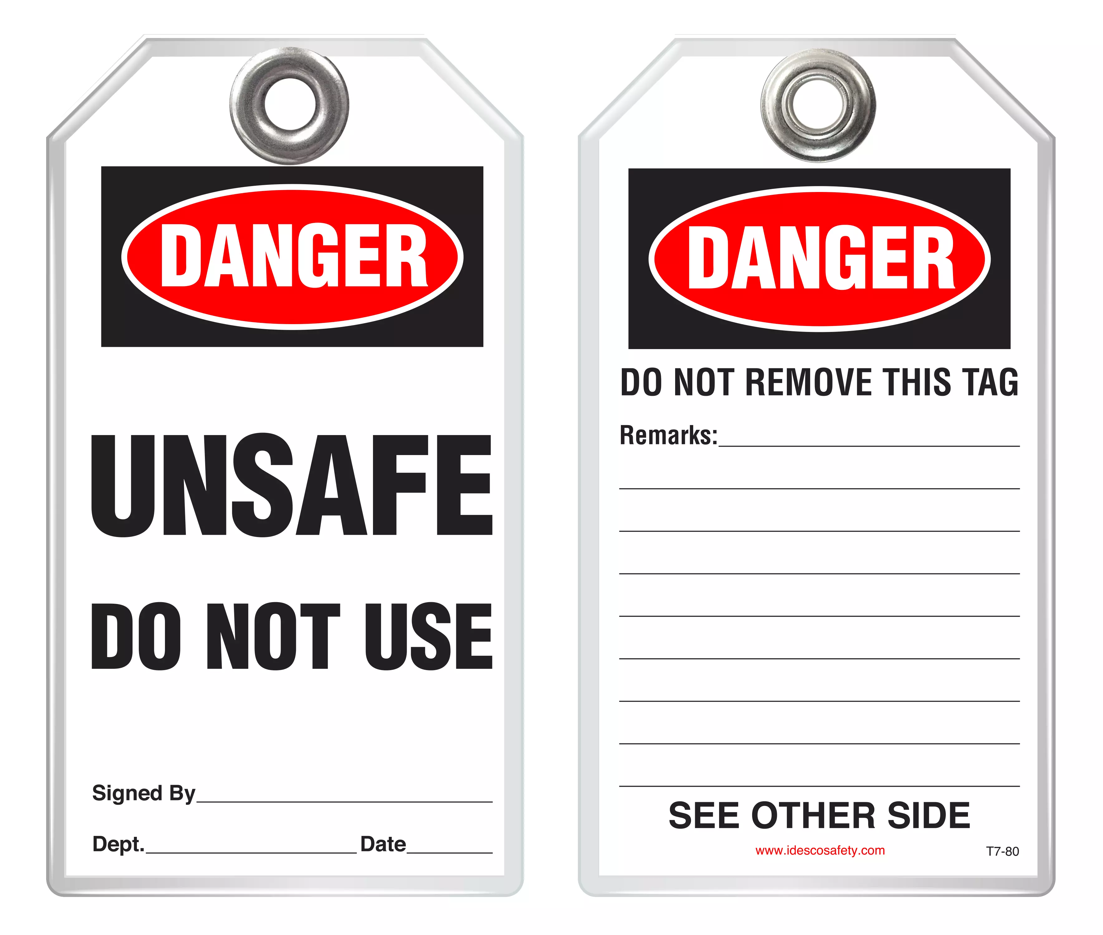 Safety Tag - Danger, Unsafe, Do Not Use T7-80