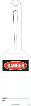 Idesco's Operational Safety Tags notify employees of operational hazards, specific dangers and warnings. These OSHA-compliant tags are durable and strong and withstand moisture, dirt, grease, chemicals and extreme temperatures. They are reinforced with a 3/8" metal grommet. Each tag has a pull strength that exceeds the OSHA-required 50 lbs. Printing is encapsulated inside rigid PVC. This rugged material has a durable, hard-matte finish which retains pen, pencil and marker notations and pencil may be erased for multiple use. The tags are clear and effective at reducing accidents and preventing worksite mishaps.