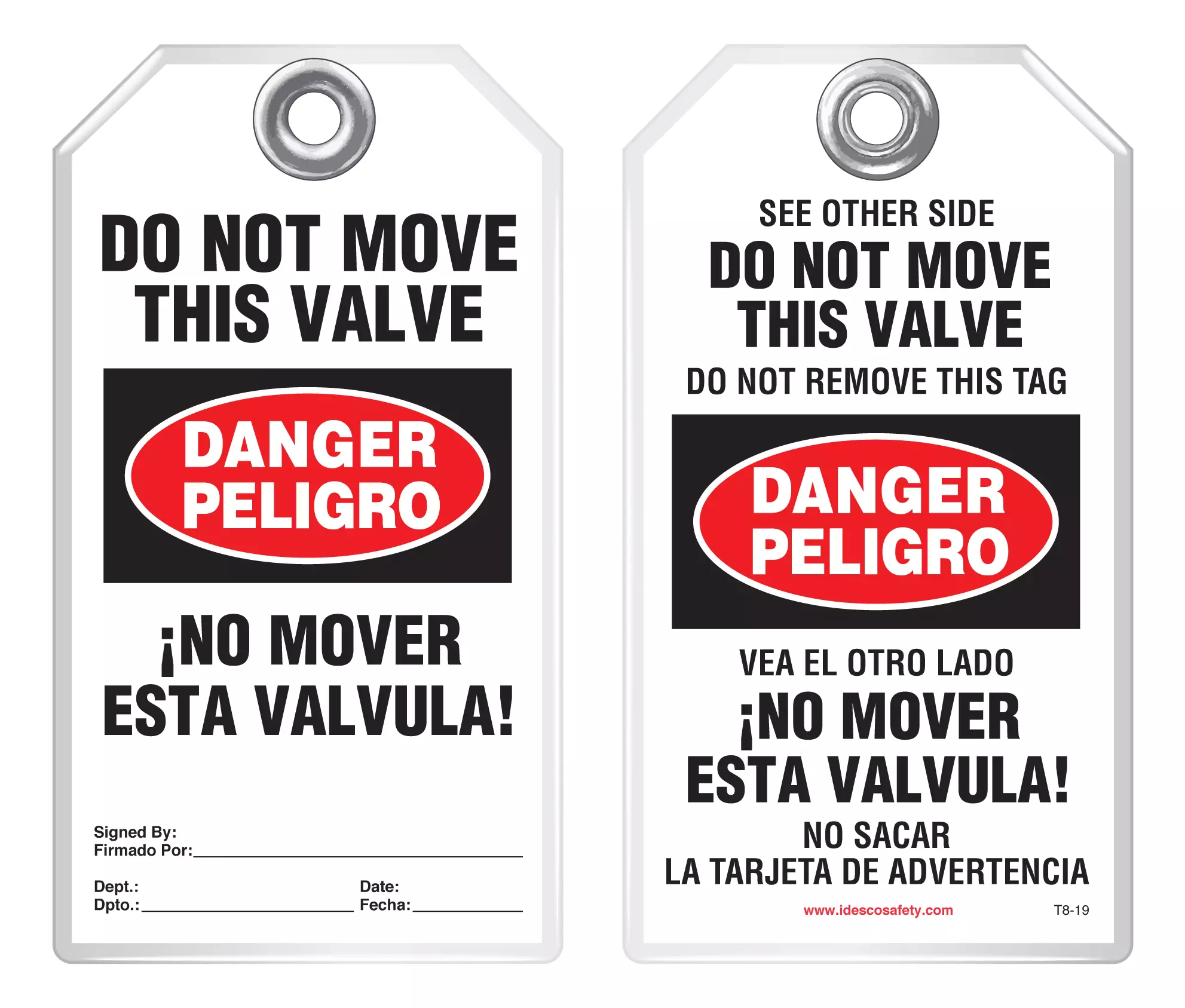 Bilingual Safety Tag - Danger, Peligro, Do Not Move This Valve, No Mover Esta Valvula (English/Spanish) T8-19