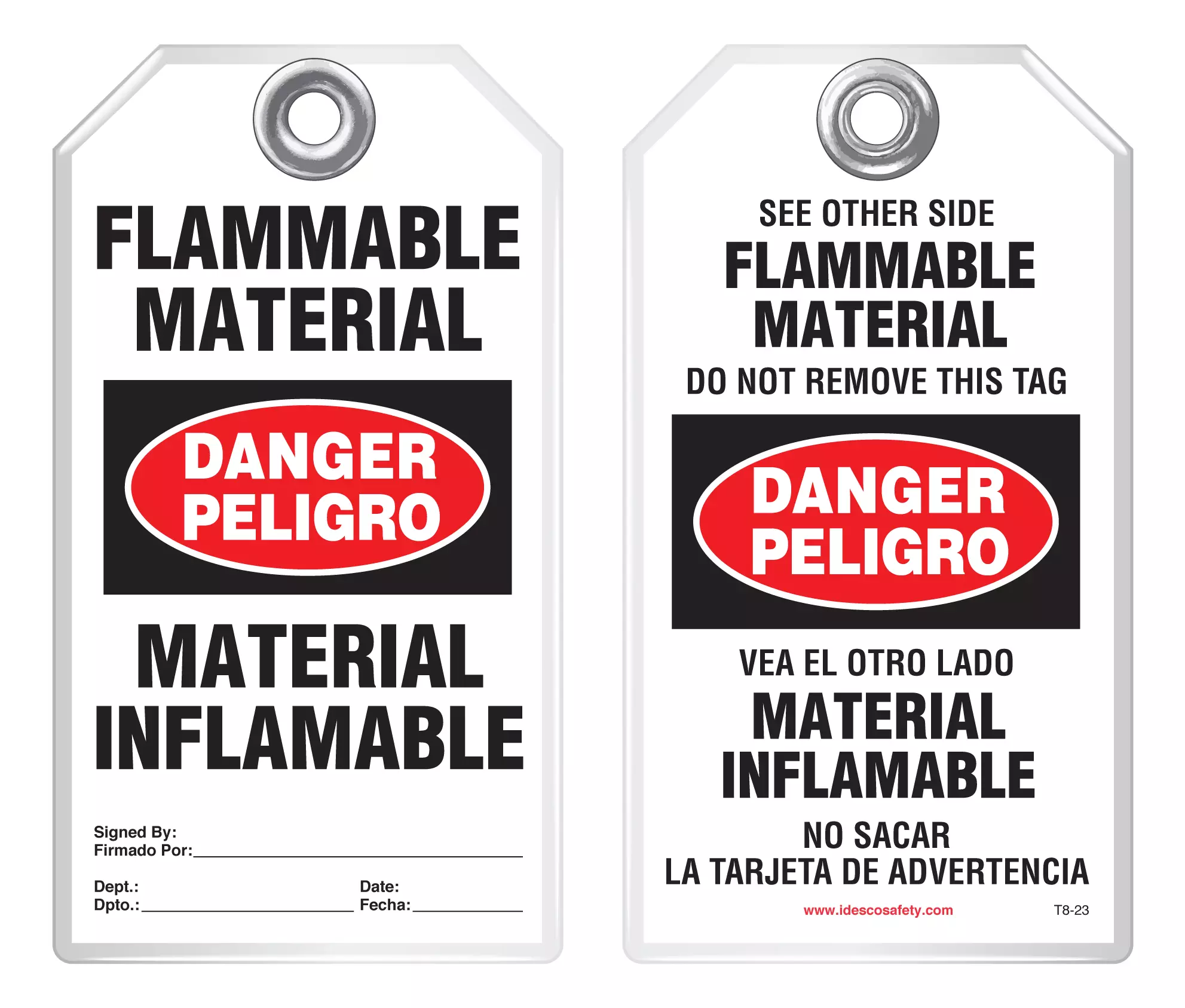Bilingual Safety Tag - Danger, Peligro, Flammable Material, Material Inflamable (English/Spanish) T8-23