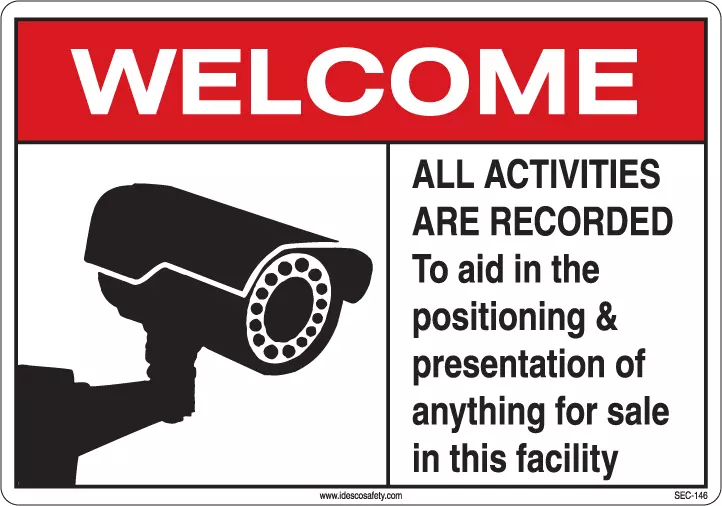 This sign announces that there are No Weapons, Cameras, Video, or Cell Phones permitted on the premises.
