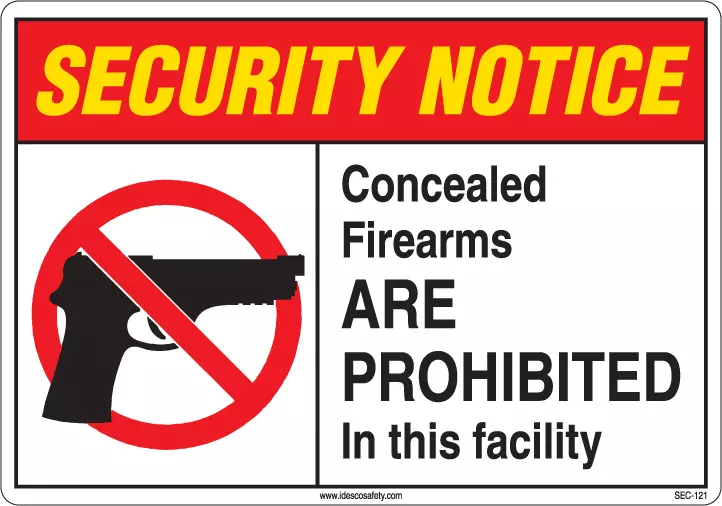 This security sign indicates that no Dangerous weapons of any kind are permitted on the premises.