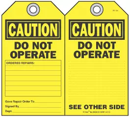 These self-laminating P/S lockout, safety and operational tags allow you to write specific instructions in pen, pencil or marker. Then simply press down a pressure-sensitive laminating film which protects the tag from moisture, dirt, grease and chemicals. No equipment is needed to laminate these tags. Each tag has a pull strength that exceeds the OSHA-required 50 lbs. Printing is on rigid plastic and a 2 mil polyester lamination on either one or two sides.